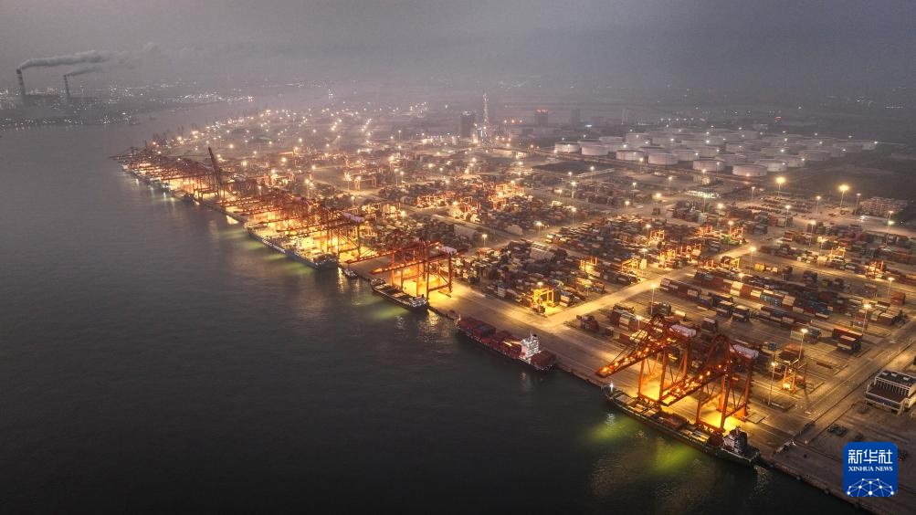 3月4日拍摄的钦州港码头夜景(无人机照片)。