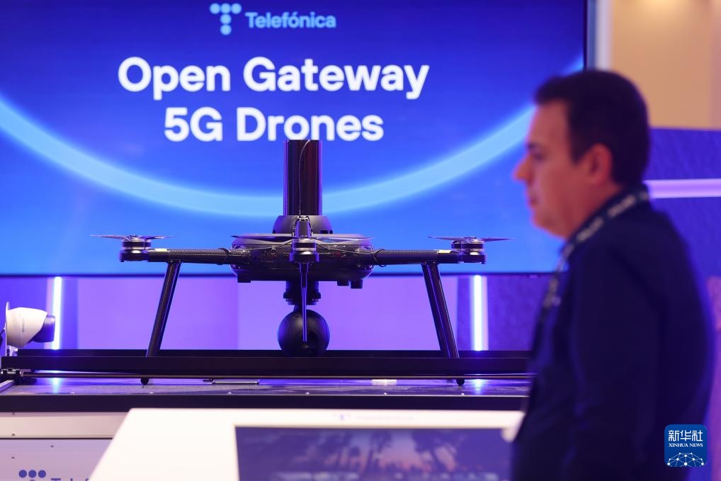 这是3月5日在西班牙巴塞罗那举行的2025年世界移动通信大会上拍摄的一款无人机。