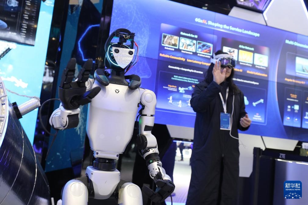 这是3月4日在西班牙巴塞罗那举行的2025年世界移动通信大会上拍摄的机器人应用演示。