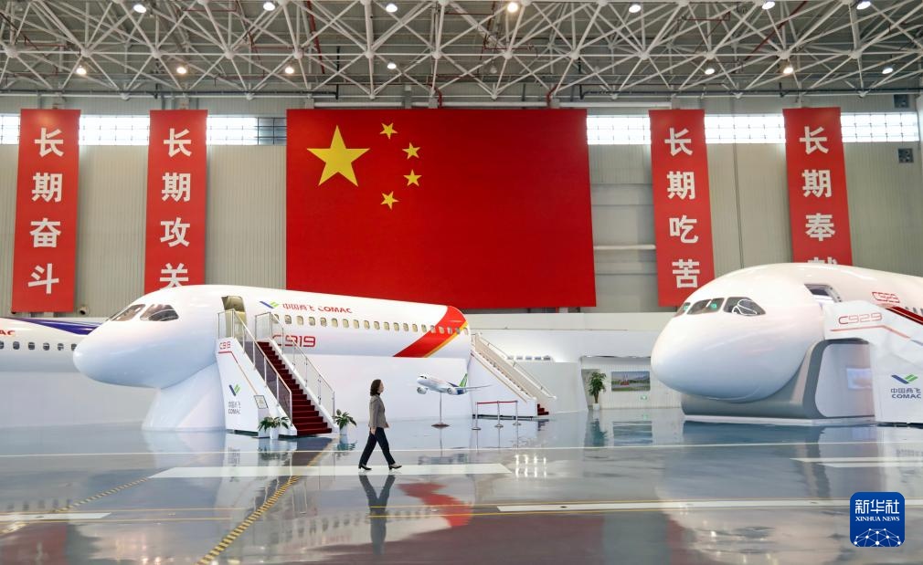3月5日,在中国商飞上海飞机设计研究院,赵春玲走过C919、C929的展示样机。