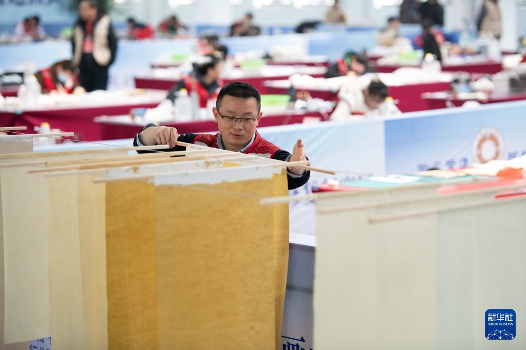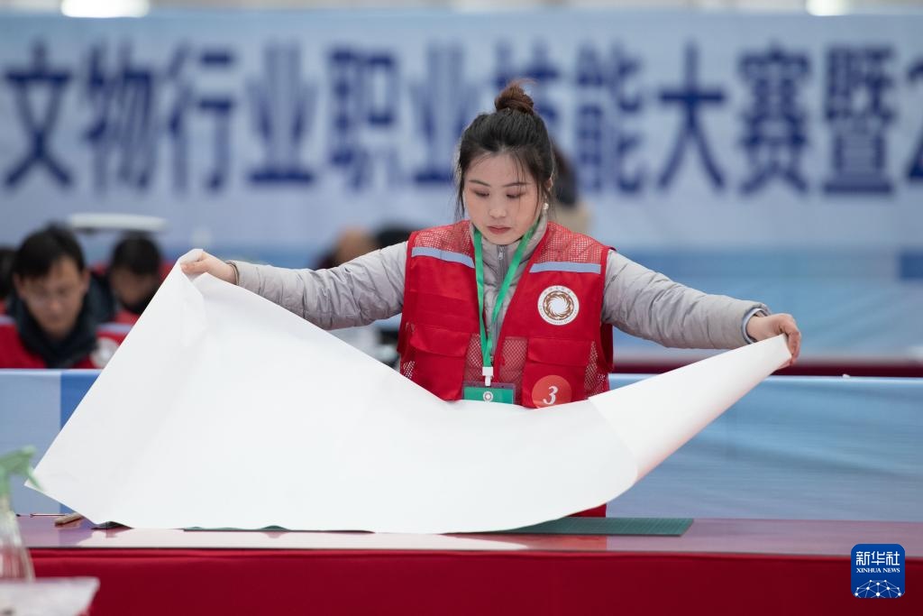 3月6日,参赛选手在参加纸张书画文物修复师项目比赛。