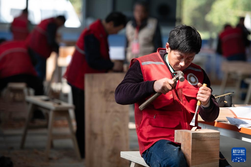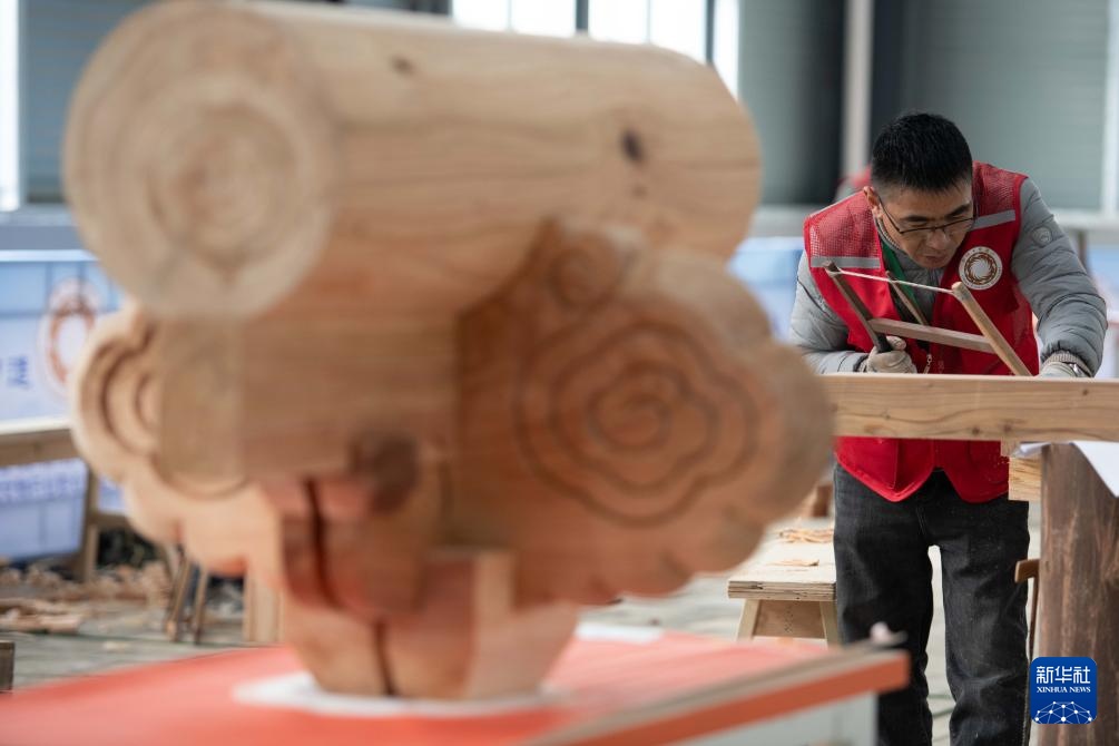 3月6日,参赛选手在参加木作文物修复师项目比赛。
