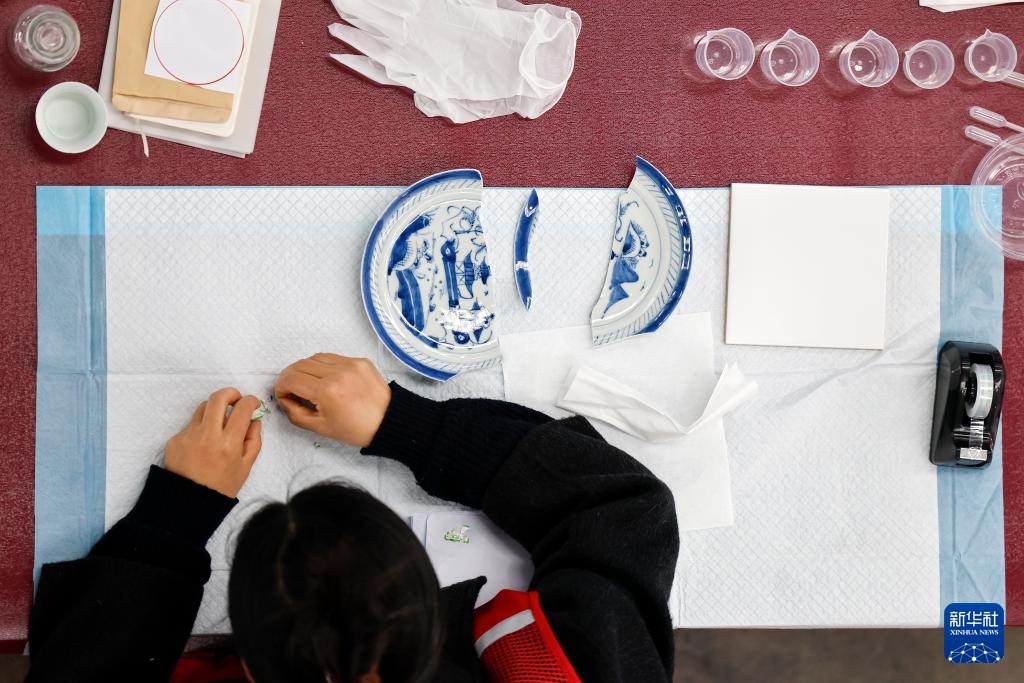 3月6日,参赛选手在参加陶瓷文物修复师项目比赛。