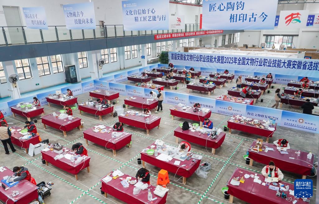 当日,首届安徽省文物行业职业技能大赛暨2025年全国文物行业职业技能大赛安徽省选拔赛在安徽省黄山市举办。本次竞赛以“徽风营造 皖韵匠心”为主题,包含木作文物修复师、泥瓦作文物修复师、金属文物修复师、陶瓷文物修复师、纸张书画文物修复师、考古探掘工6个赛项,来自安徽省文博单位、相关高校和企业的100余名选手同台竞技。