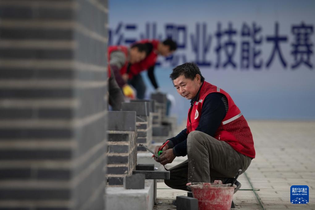 3月6日,参赛选手在参加泥瓦作文物修复师项目比赛。