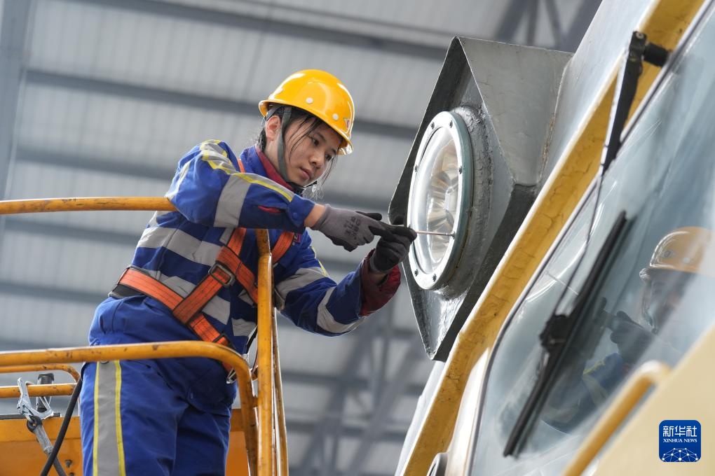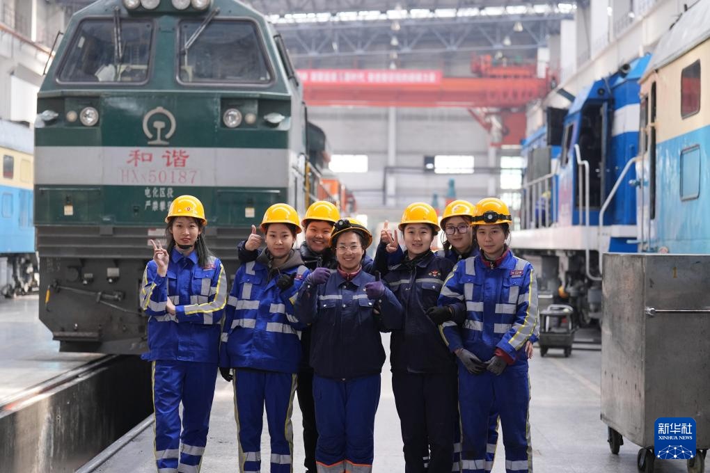 在中国铁路哈尔滨局集团有限公司哈尔滨机务段检修库,女子检修班组的机车钳工们为火车进行检修作业,保障“大粮仓”黑龙江省春耕备耕期间的种子、化肥、农机具等农业物资运输的运力安全。