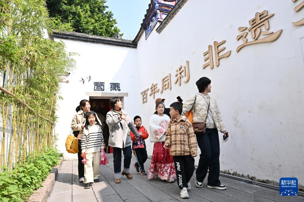 3月8日,家长带领小朋友游览福州三坊七巷同利肉燕非遗文化体验馆。