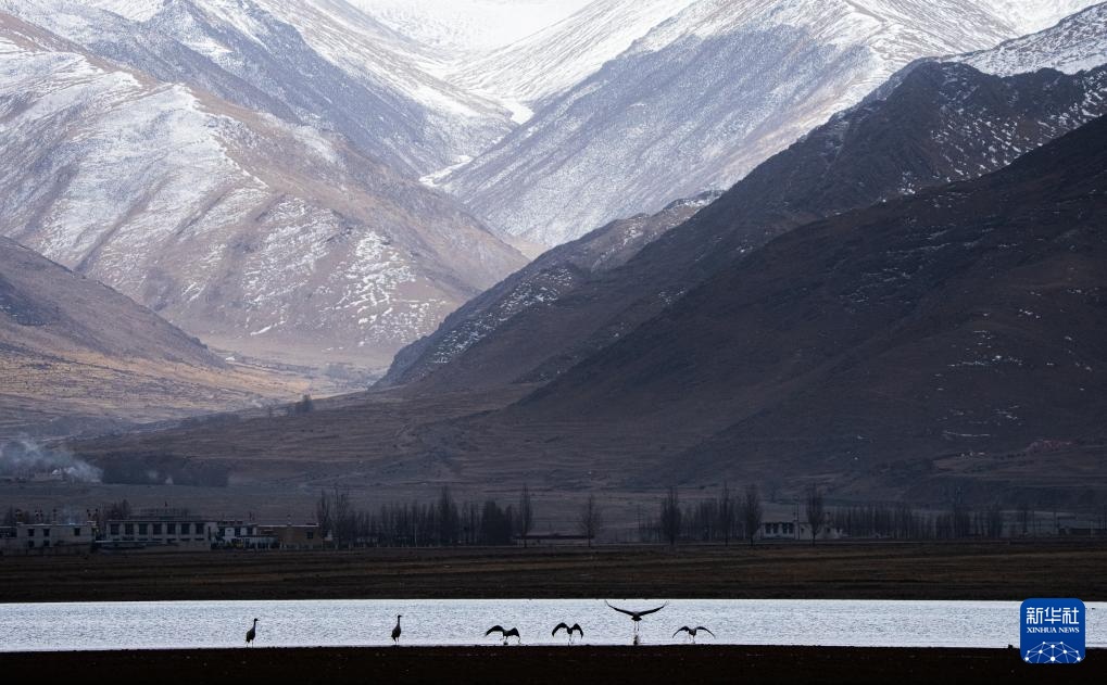 每年冬季,大批黑颈鹤在西藏拉萨市林周县虎头山水库安家越冬。虎头山水库周边的沼泽地、湖泊及河滩为黑颈鹤提供了理想的越冬环境。