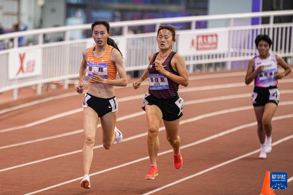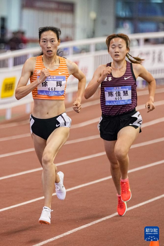 3月9日,浙江体彩队选手徐辉(左)在女子3000米决赛中。她以9分20秒99的成绩获得冠军。
