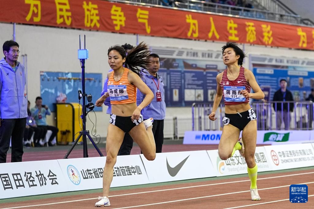 3月9日,浙江体彩队选手马成娜(左)在女子200米决赛中。她以24秒11的成绩获得冠军。