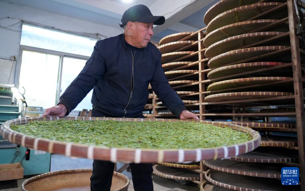 3月9日,茶农在乐清市白石街道中雁村一处茶园加工茶叶。