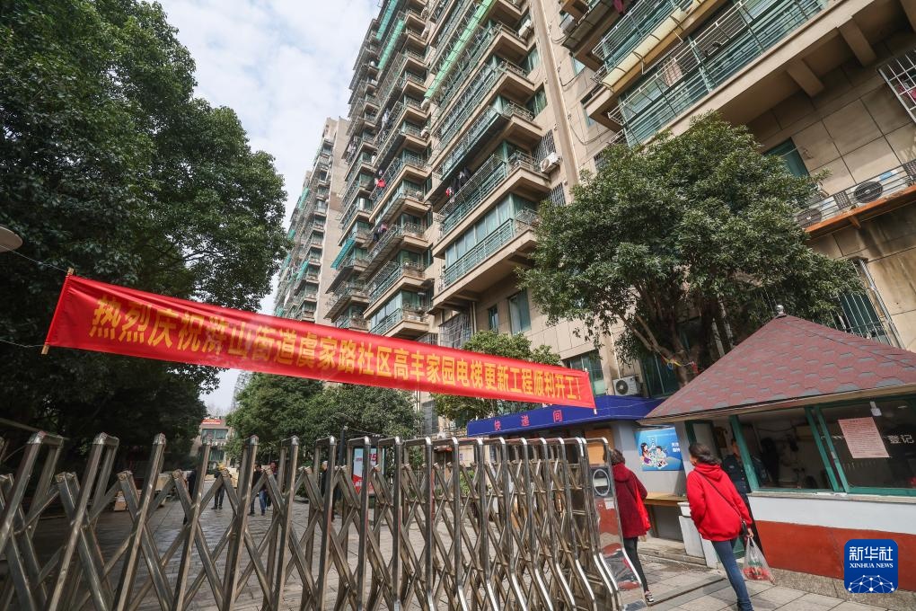 3月11日拍摄的进行住宅老旧电梯更新的慈溪市浒山街道虞家路社区高丰家园小区。