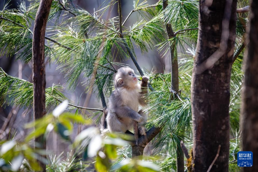 春日里,在云南迪庆藏族自治州白马雪山国家级自然保护区内,滇金丝猴穿梭于树林之间,或驻足枝头,或觅食嬉戏,乐享春日时光。近年来,随着生态环境不断改善、保护工作有效推进,白马雪山国家级自然保护区内的滇金丝猴数量稳步增长。