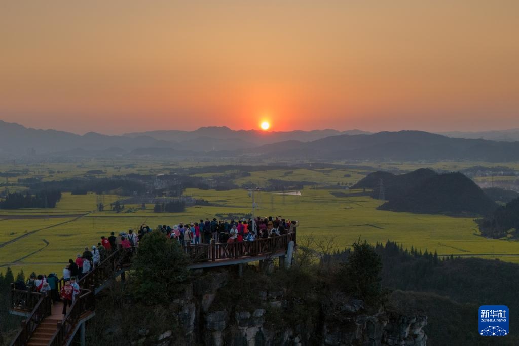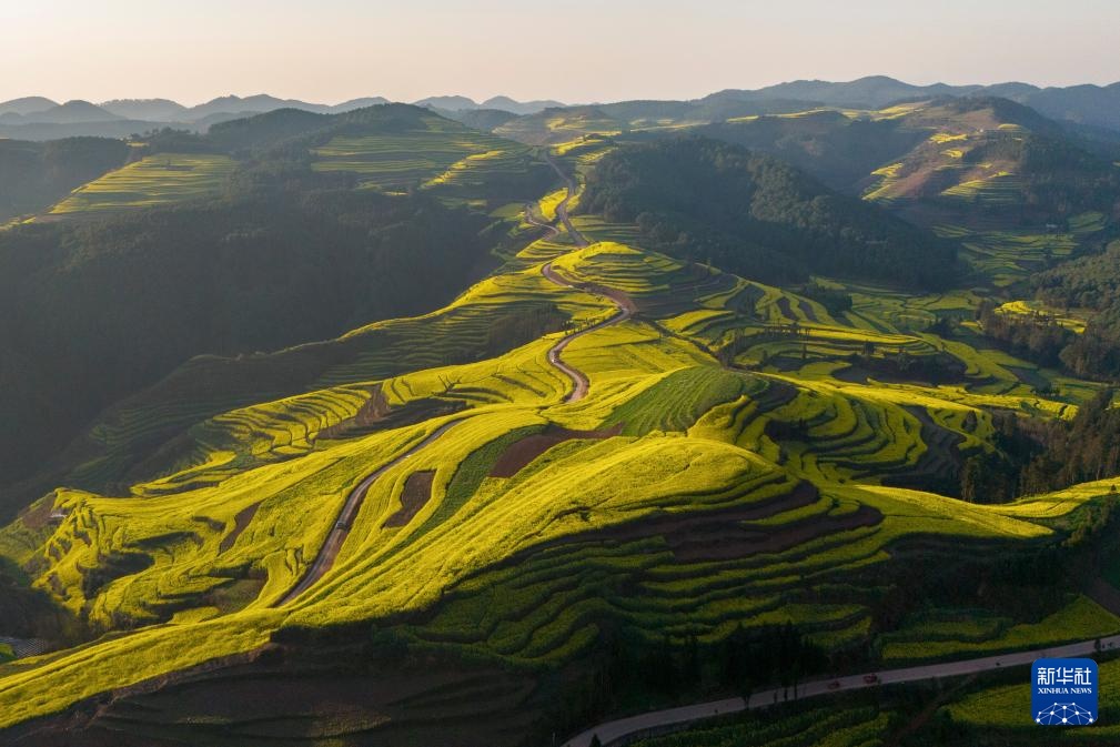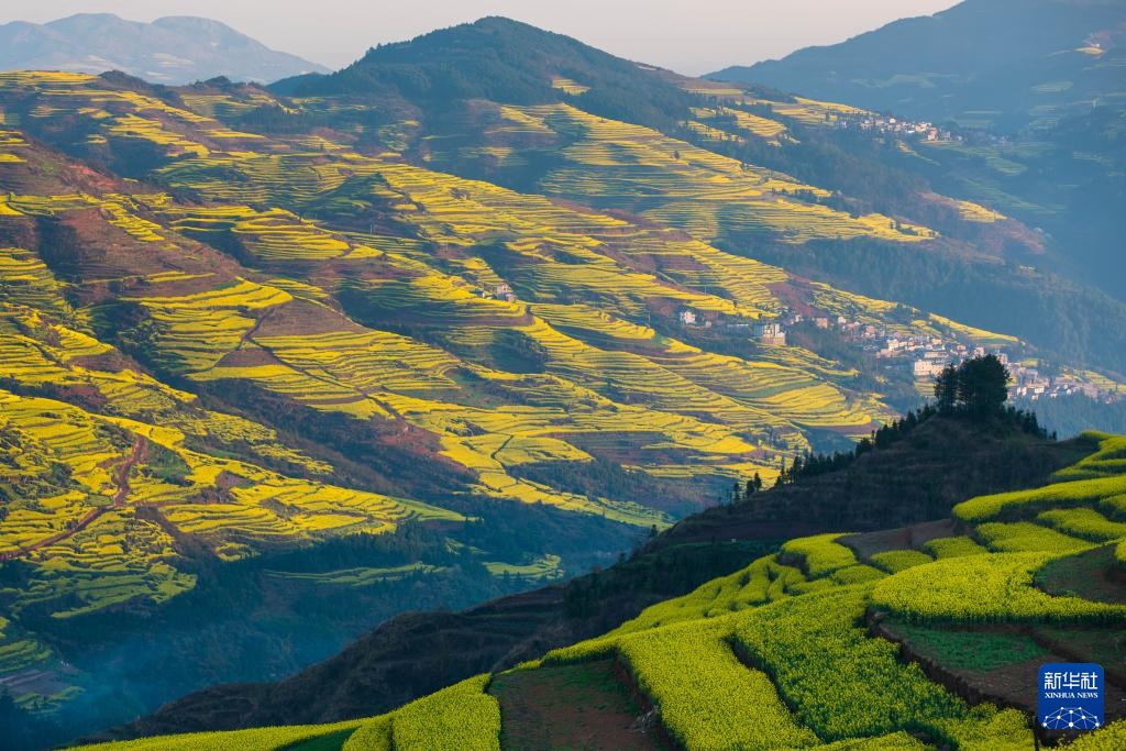 近期,云南省曲靖市罗平县近百万亩油菜花相继绽放,花海与山峦、村寨勾勒出一幅田园春景图,吸引国内外游客纷至沓来,感受春天的气息。