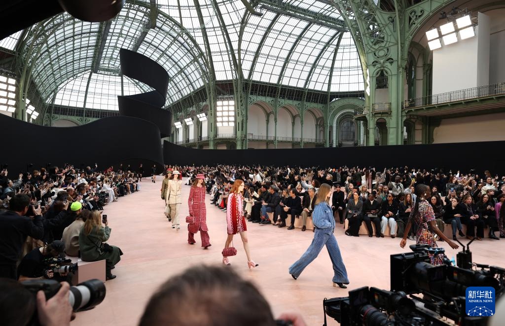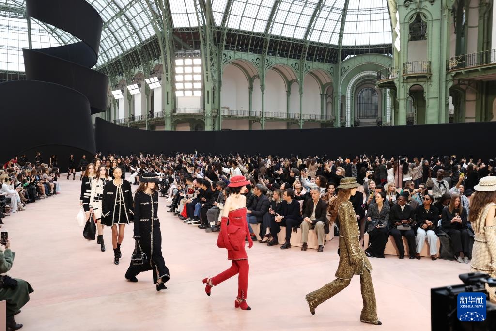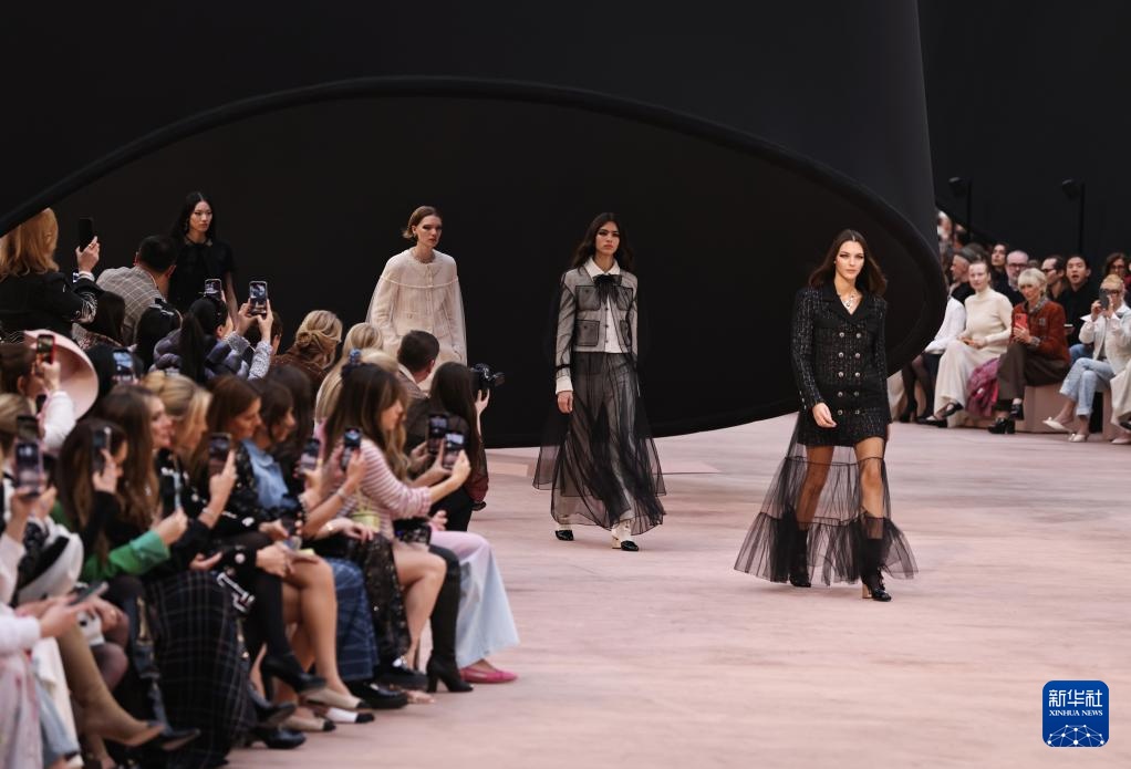 3月11日,模特在法国巴黎时装周上展示法国品牌香奈儿2025/2026秋冬高级成衣。