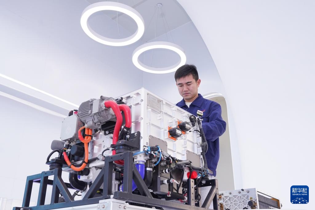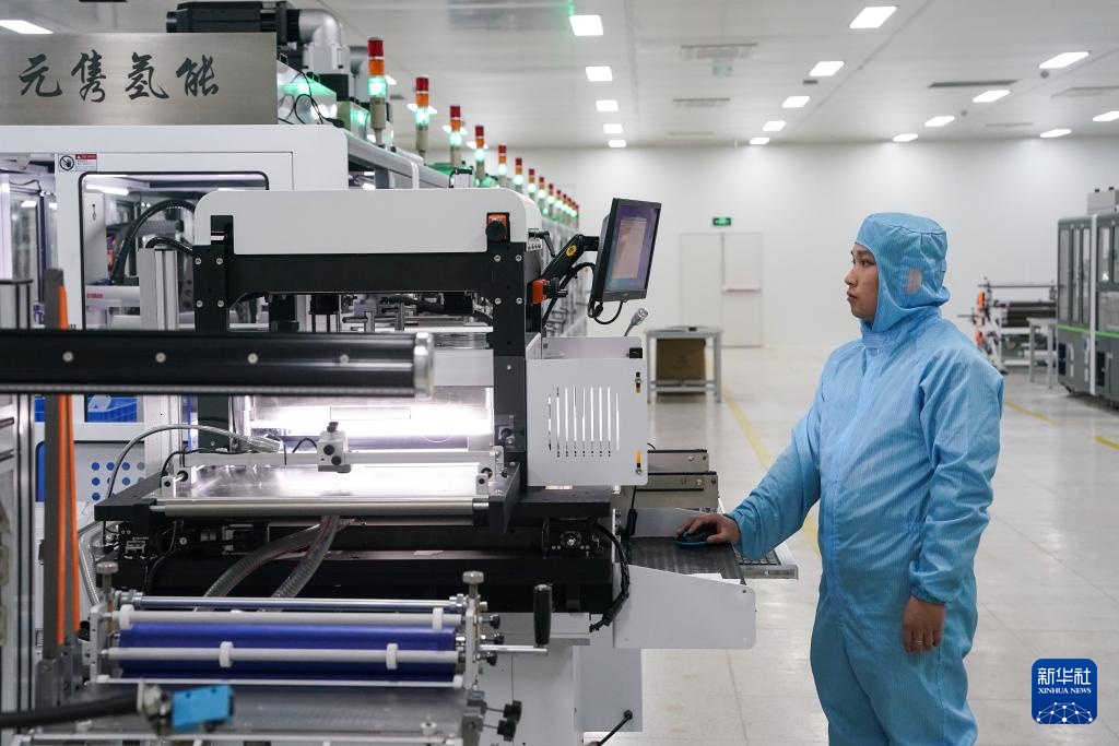3月11日,工人在安徽元隽氢能科技股份有限公司检测氢燃料电池。