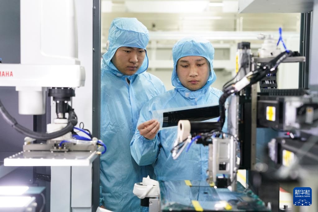3月11日,工人在安徽元隽氢能科技股份有限公司质子交换膜生产线检查产品。