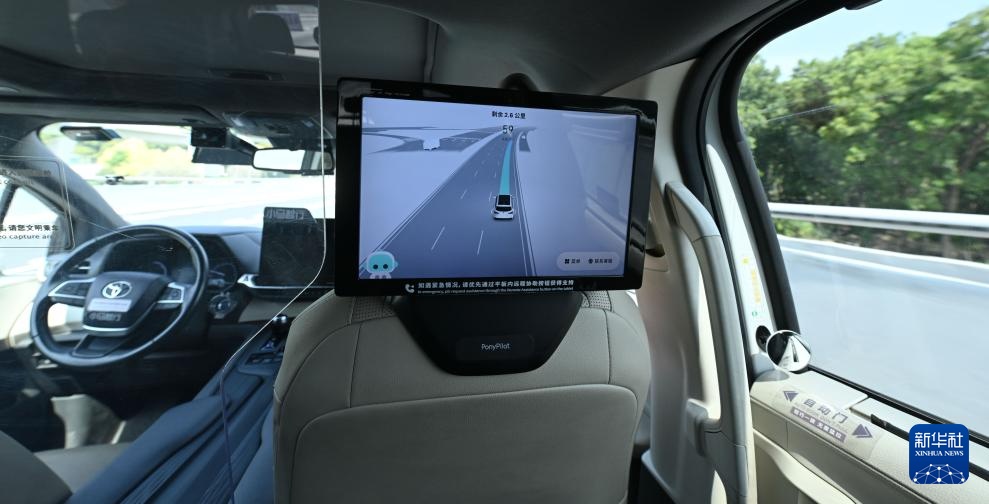 3月11日拍摄的行驶在广州南沙区的小马智行自动驾驶无人商业化出租车车内屏幕显示情况。