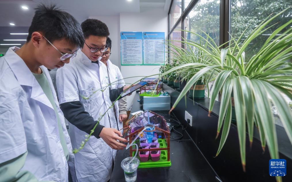 3月12日,在嘉兴市东北师范大学南湖实验教育集团智慧生态实验室内,学生们利用基于物联网的水培系统进行生物的培育实验。该教育集团被评为全国青少年人工智能活动特色单位。
