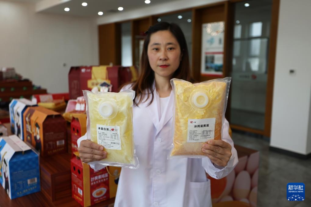 3月11日在辽宁禾丰蛋业有限公司拍摄的冷冻鸡蛋液产品。