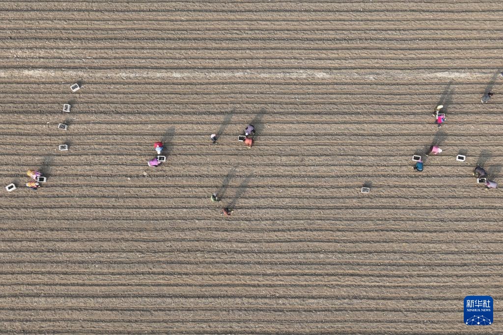 随着天气转暖,河北省唐山市丰南区的农民抢抓农时播种马铃薯,田间呈现出一派繁忙景象。