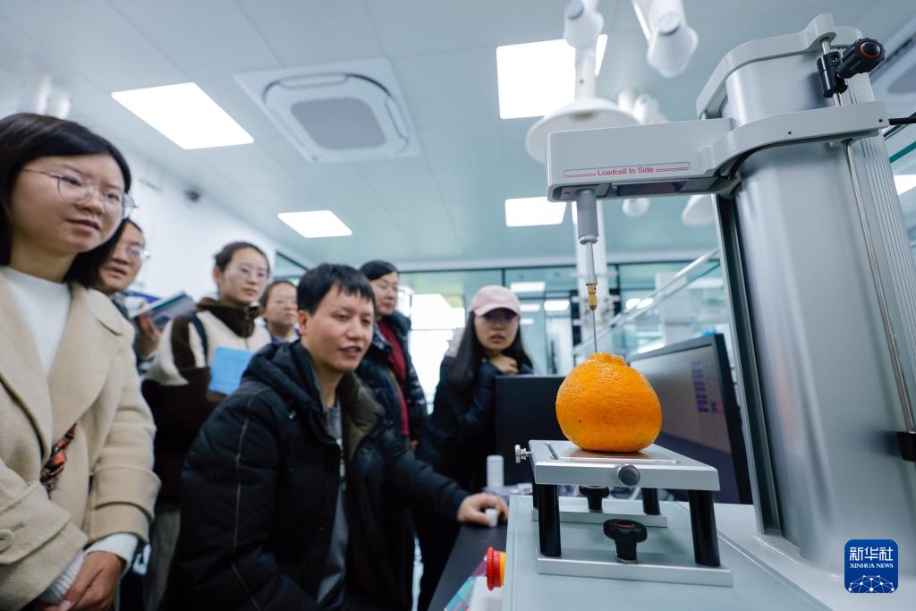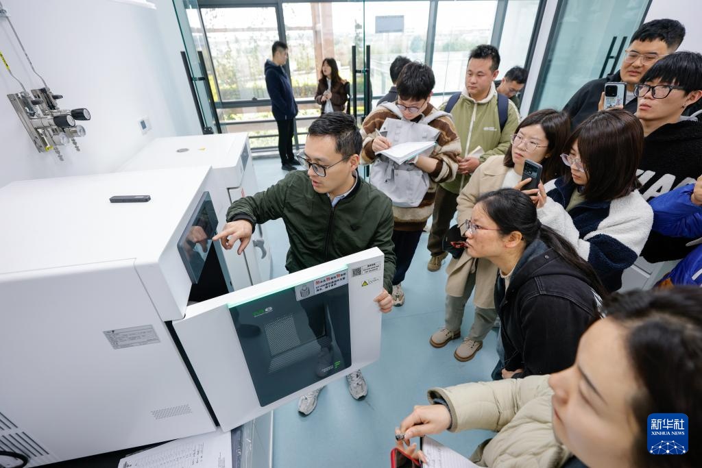 3月13日,在位于四川成都彭州市的中国南方蔬菜种业创新中心的植物营养实验室,四川省农业科学院的研究生在参观学习。