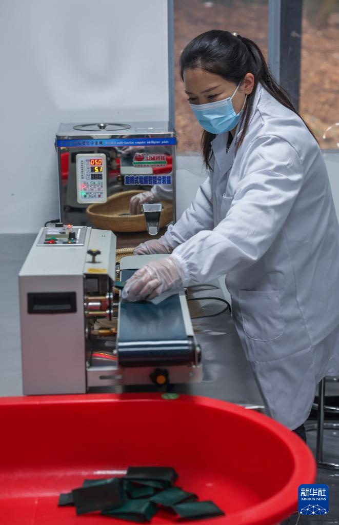 3月14日,中泰街道大涤山茶叶专业合作社的工人在称重、包装新炒制好的茶叶。