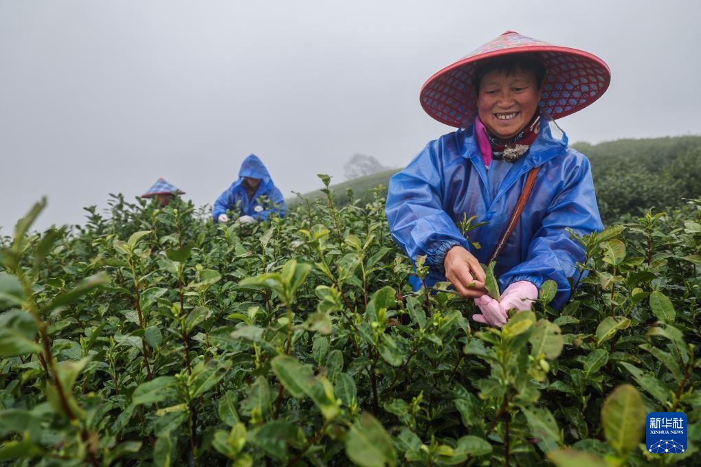 近日,浙江省杭州市余杭区中泰街道万亩茶园迎来了早春头茶开采。