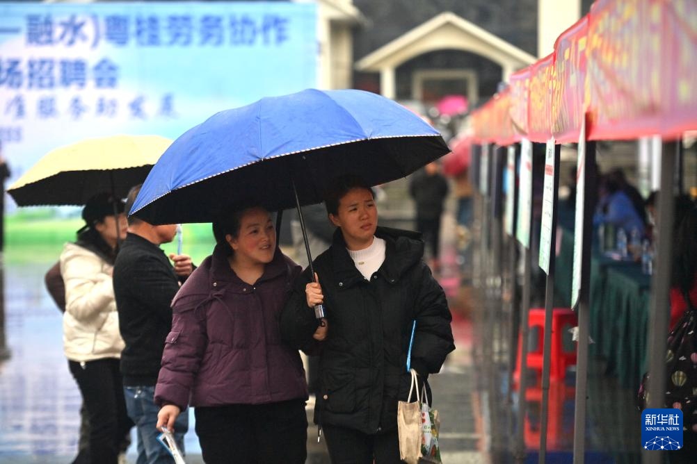 当日,广西柳州市融水苗族自治县举行粤桂劳务协作暨春风行动专场招聘会,两地60多家企业共提供数千个工作岗位,吸引众多求职者冒雨前来应聘。