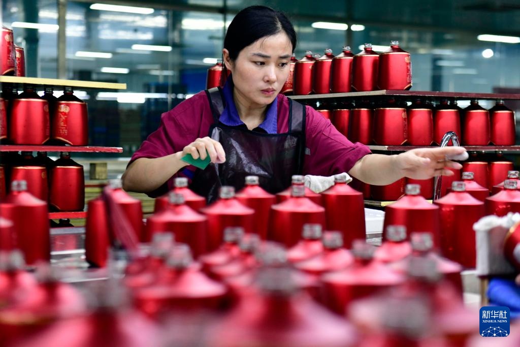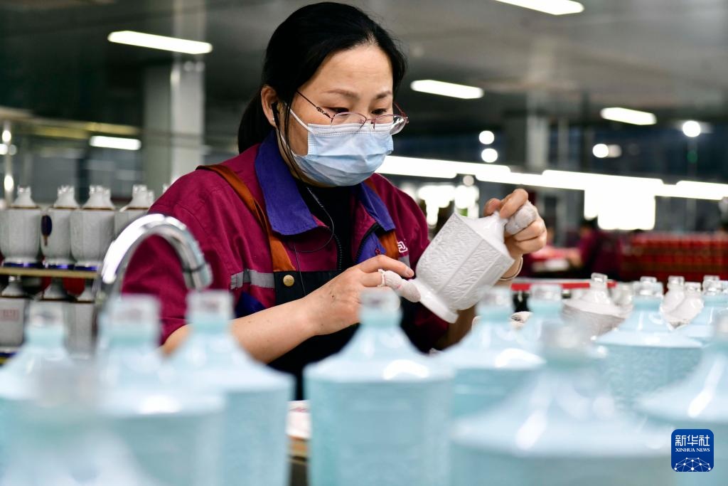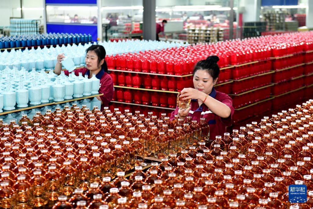 3月13日,在郓城县羽林玻璃有限公司,工作人员在查验玻璃瓶。