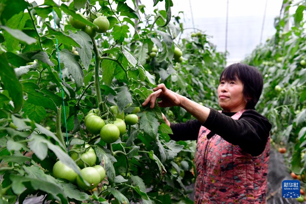 3月13日,在郓城恒天然农业发展科技有限公司,菜农在打理西红柿。