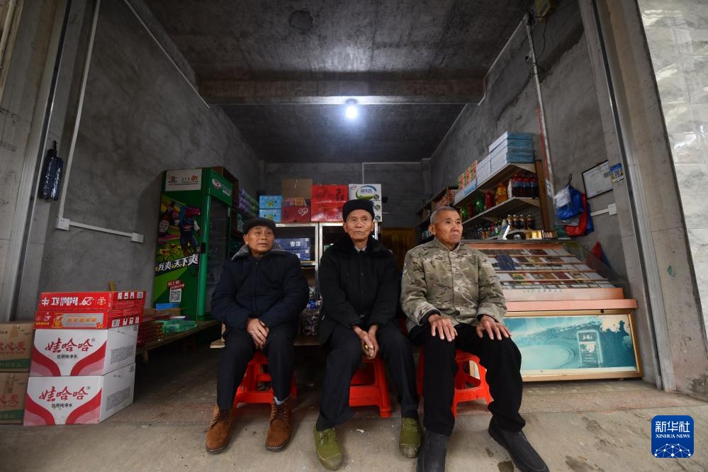 在广西融水苗族自治县洞头镇洞头村,几位老人坐在小商店门口观看篮球比赛(2025年2月2日摄)。