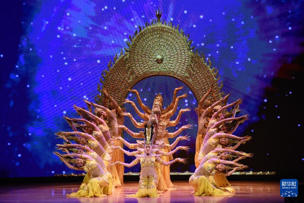 3月15日,中国残疾人艺术团演员在台北表演《千手观音》。