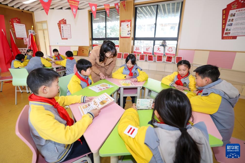 3月17日,杭州市长寿桥岳帅小学老师为学生讲解健康均衡膳食知识。