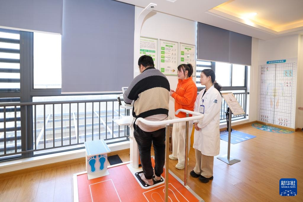 3月17日,市民(左)在杭州市拱墅区康桥街道社区卫生服务中心体重管理门诊体检。