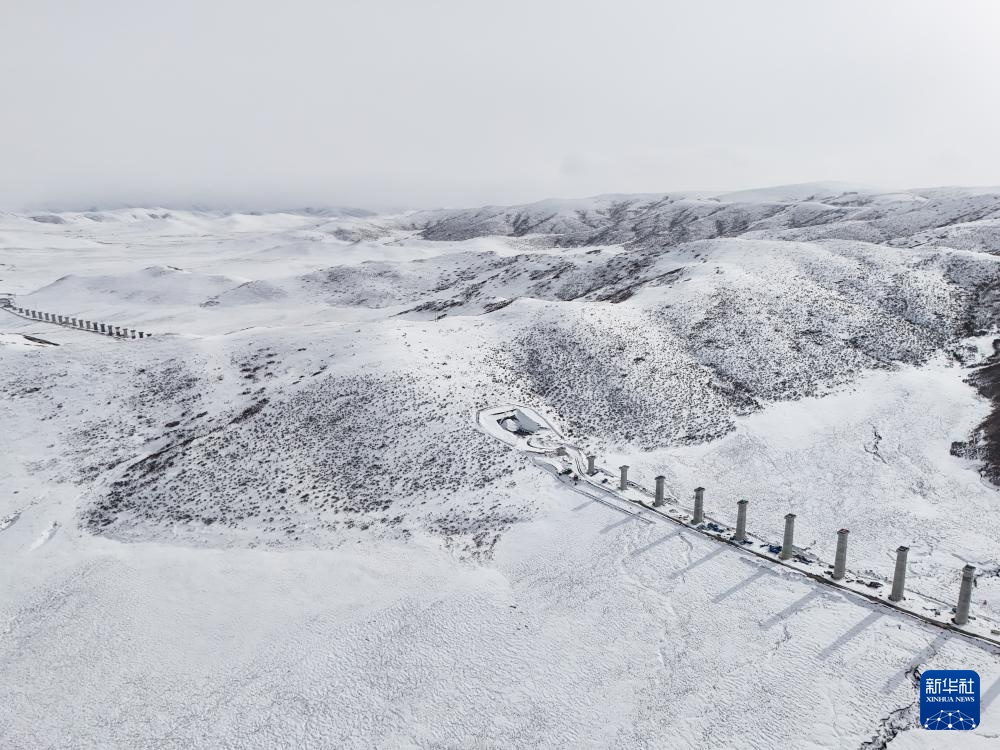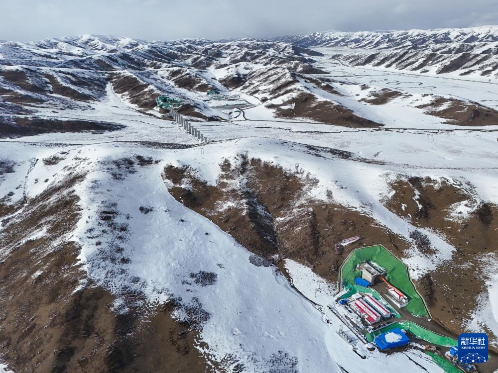 3月17日拍摄的在建的西宁至成都铁路(无人机照片)。