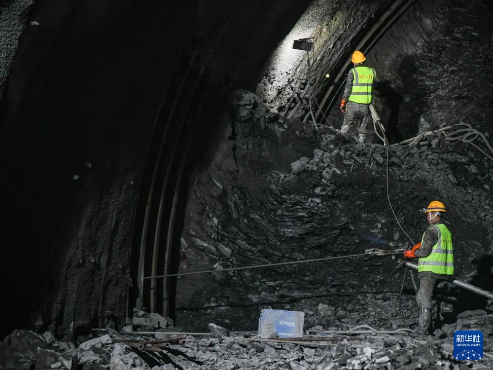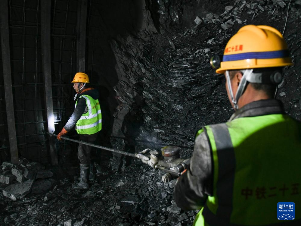 3月17日,中铁二十五局的工人在班佑1号隧道内施工。