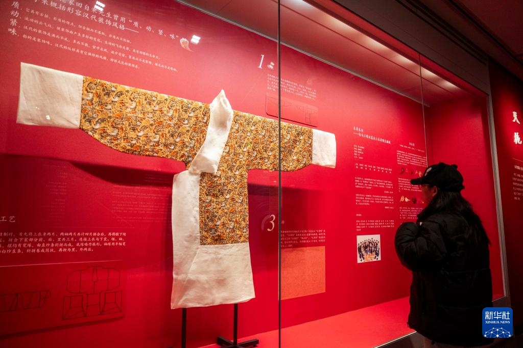 3月18日,观众在株洲博物馆参观“炎土圣风:楚汉观照——中国传统服饰文化研究与艺术创作展”。