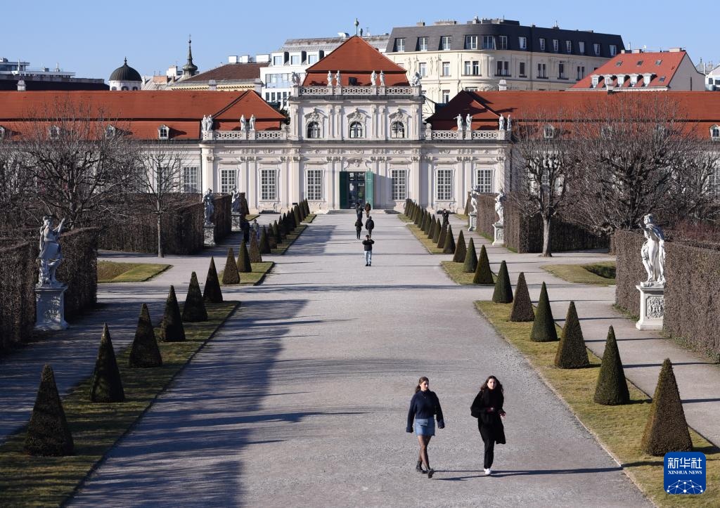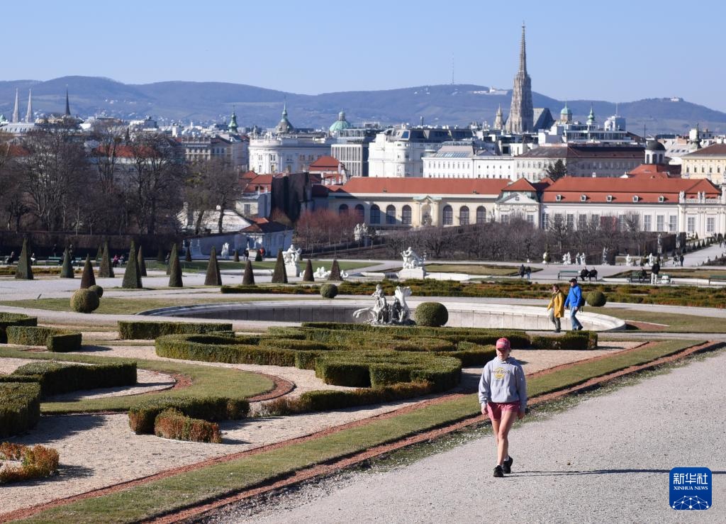 3月19日,人们在奥地利维也纳美景宫花园休闲。