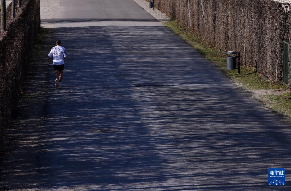 3月19日,一名男子在奥地利维也纳美景宫花园跑步。