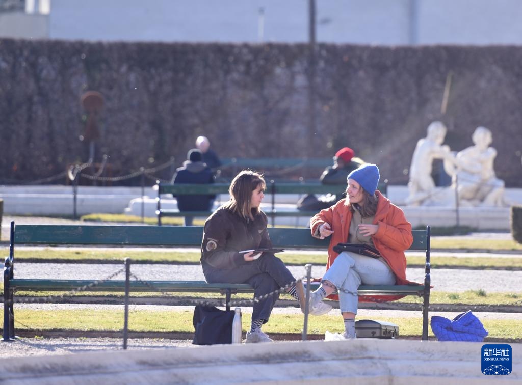 近日,奥地利首都维也纳气温回升,天气晴朗,人们纷纷到户外游玩休憩,尽享春光。