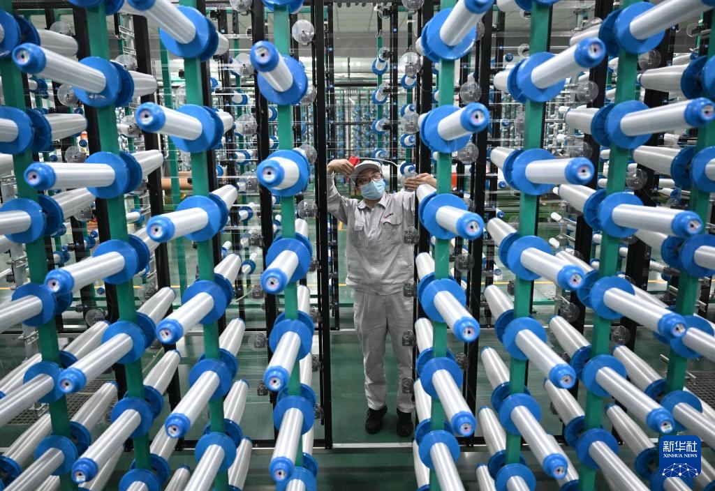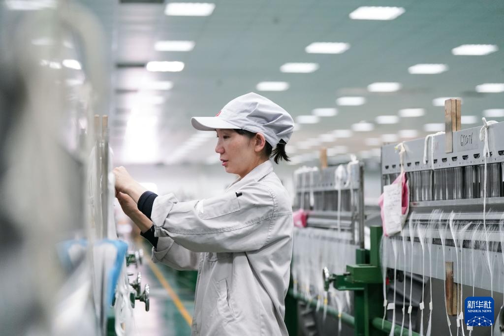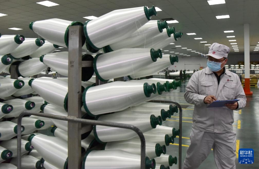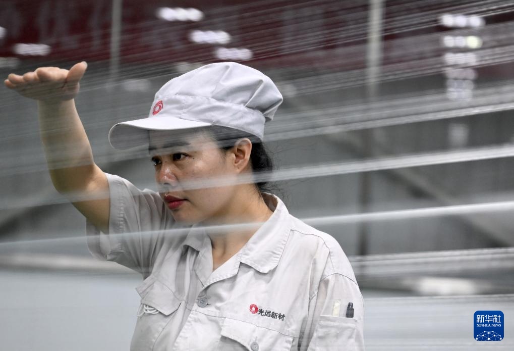 3月19日,工人在河南光远新材料股份有限公司电子布生产车间进行原丝巡检。