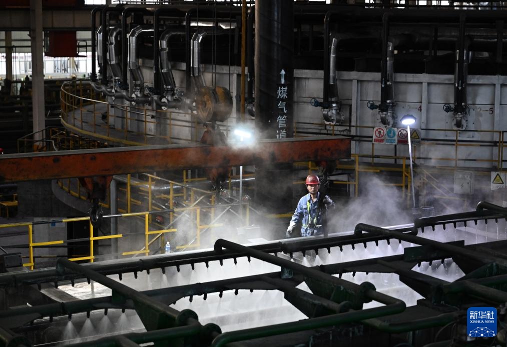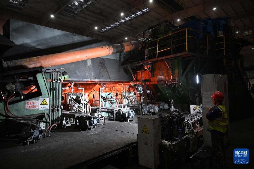 3月19日,工人在林州凤宝管业有限公司159连轧管厂生产线上作业。