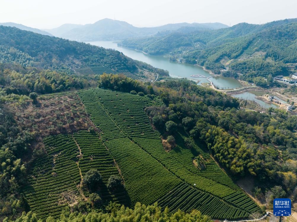 这是3月20日拍摄的宁波市江北区慈城镇毛岙村的茶山(无人机照片)。