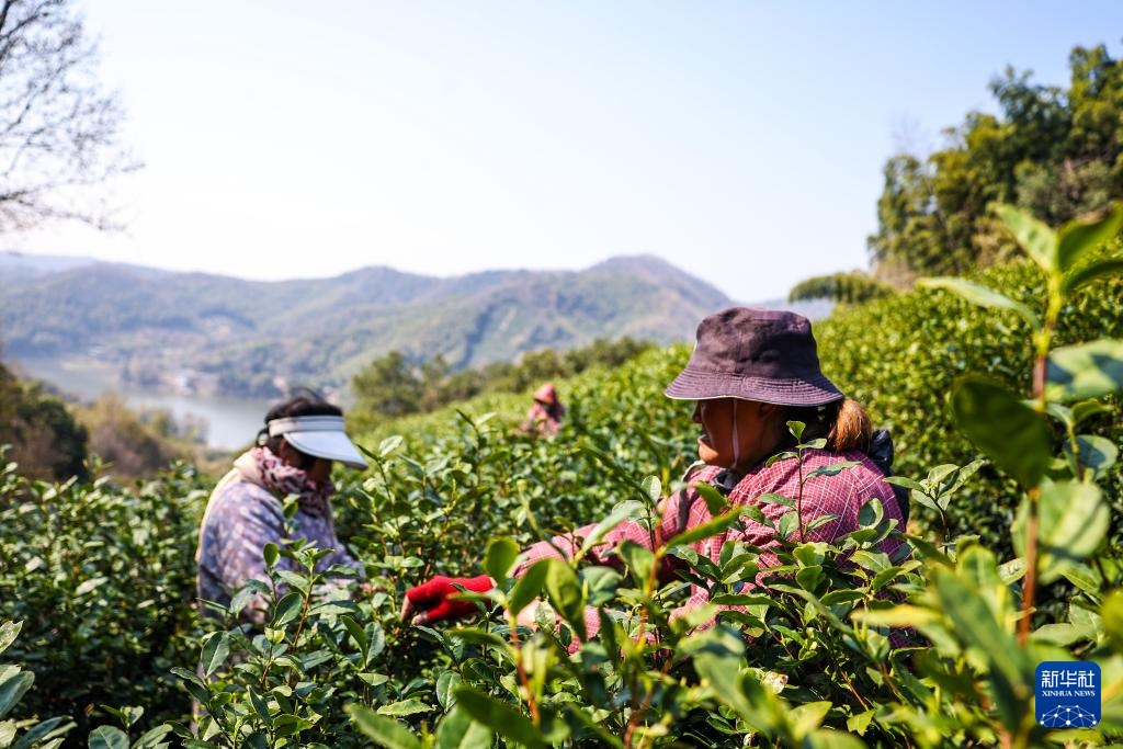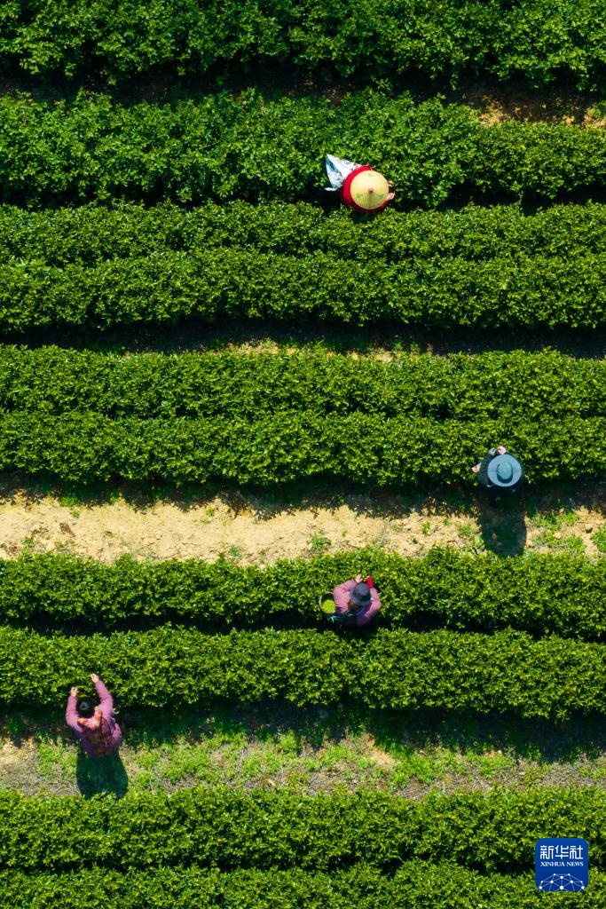 春分时节,浙江省宁波市江北区慈城镇毛岙村的茶农们上山采摘春茶,郁郁葱葱的茶山与辛勤劳动的茶农共同勾绘出一幅江南春日画卷。