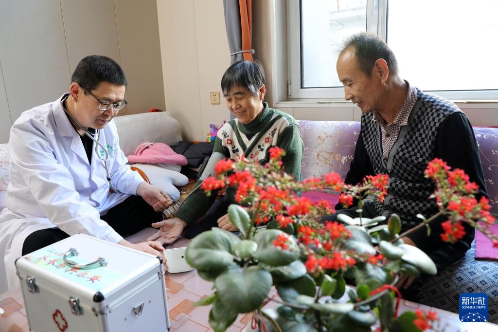 3月18日,在山东省滨州市博兴县博昌街道乐安社区,“睦邻互助”志愿服务队一名医生志愿者上门为社区居民义诊。