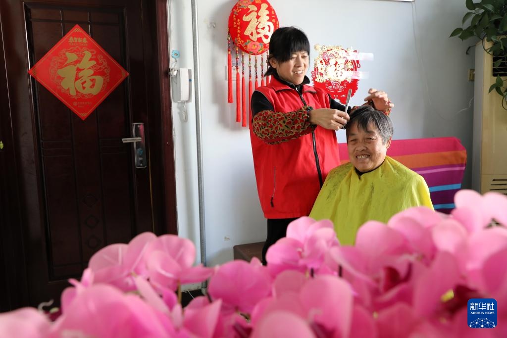 3月18日,在山东省滨州市博兴县博昌街道乐安社区,“睦邻互助”志愿服务队一名志愿者上门为社区居民免费理发。