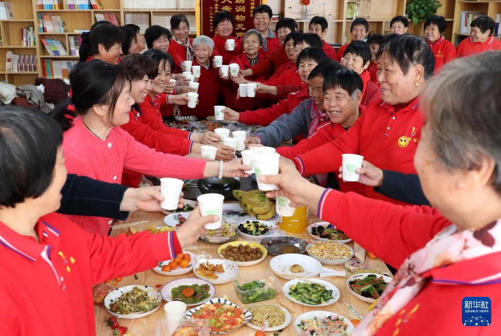 3月19日,在山东省滨州市博兴县博昌街道锦绣社区,社区居民参加“睦邻百家宴”。
