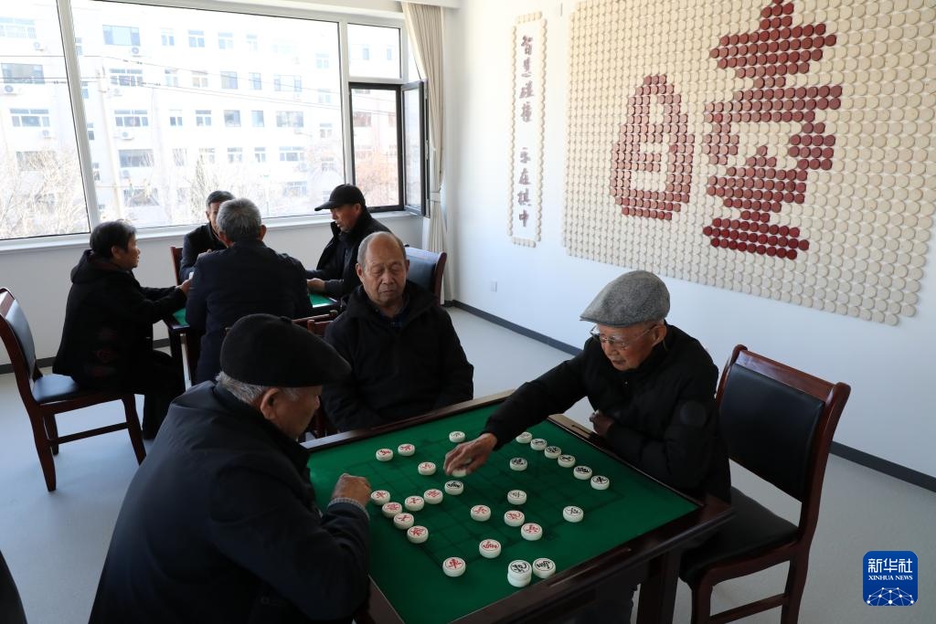 3月18日,在山东省滨州市博兴县博昌街道睦邻中心,社区居民在娱乐室下棋、打牌。