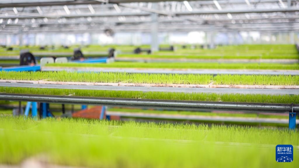 3月19日,在重庆市永川区仙龙镇双星村智能育秧基地,秧苗在水肥一体化系统的灌溉下长势喜人。